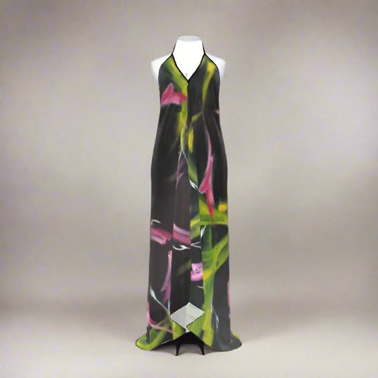 Celestial Bouquet Silk Backless Halterneck Dress